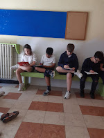 Als het in de klas te warm wordt, zoeken we frisse plekken op in onze school....๐